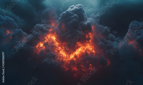 Dramatic cloudscape with fiery glow illuminating the dark sky and surrounding storm clouds above