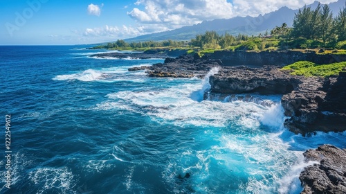 Dramatic Coastal Cliffs of Kauai with Crashing Waves and Lush Vegetation, Hawaii