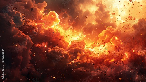 Dramatic Fiery Explosion with Billowing Smoke and Debris in a Dynamic Sky Capturing Intense Energy and Power