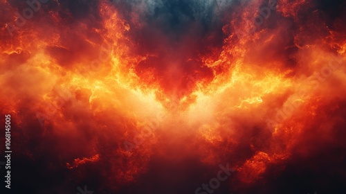 Dramatic fiery sky with dark clouds in the background, resembling a fiery inferno or a powerful force.