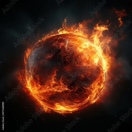 Dramatic Fiery Sphere Engulfed in Intense Flames, Illuminating the Surrounding Darkness with a Fierce Glow