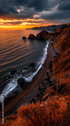 Dramatic Icelandic Coastline with Gigantic Cliffs at Dawn