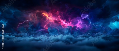 Dramatic Lightning Storm over a Colorful Cloudy Sky with Intense Thunder and Electric Colors