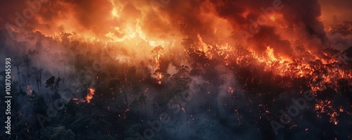 Dramatic photo of wildfire raging through forest highlights destructive force of climate change.