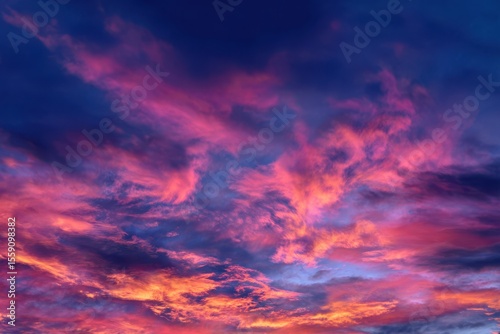 Dramatic Pink and Orange Clouds at Dusk Against a Deep Blue Sky Backdrop