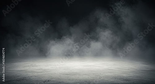 Dramatic smoky background with textured floor creating an atmospheric scene ideal for product placement and showcasing special effects