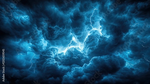 Dramatic storm clouds illuminated by lightning, creating a striking visual effect.