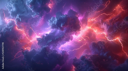 Dramatic Stormy Sky with Electric Lightning and Colorful Clouds