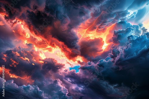 Dramatic Stormy Sky with Orange and Blue Clouds, Capturing the Power and Beauty of Nature in a National Geographic Style