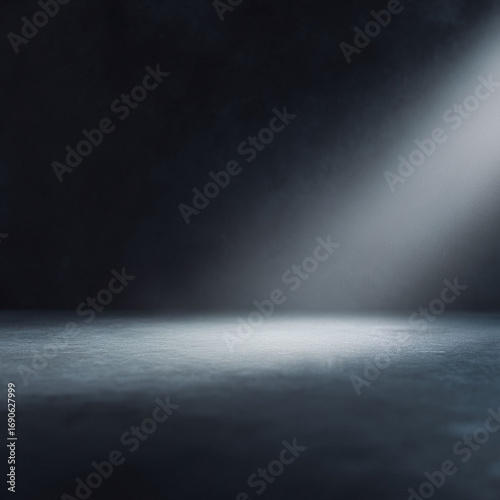 Dramatic studio shot featuring a single spotlight illuminating a textured floor against a dark backdrop. Evokes themes of mystery, focus, and unveiling. Ideal for product showcases.