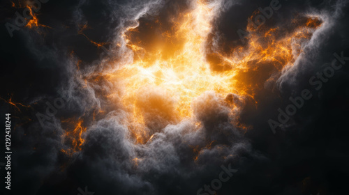 Dramatic sunlight burst through dark stormy clouds for atmospheric design