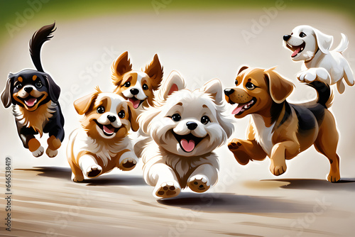 Draw a picture of several dogs frolicking and playing. Generative AI