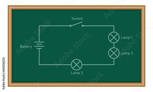 Draw a schematic diagram of three bulbs connected in series.