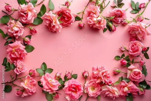 Drawing of a heart-shaped arch made of flowers. Backdrop with selective focus and copy space for the inscription. Beautiful simple AI generated image in 4K, unique.