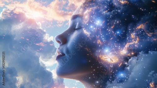 Dreams and Aspirations: A face with whimsical stars, clouds, and abstract shapes, embodying the hopes and dreams that fuel the pursuit of our aspirations.
