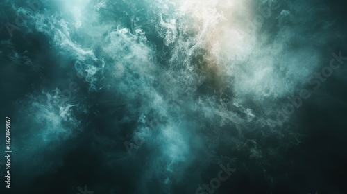Dreamy abstract image of ethereal smoke swirling in shades of teal and white, creating a mystical and calming effect.