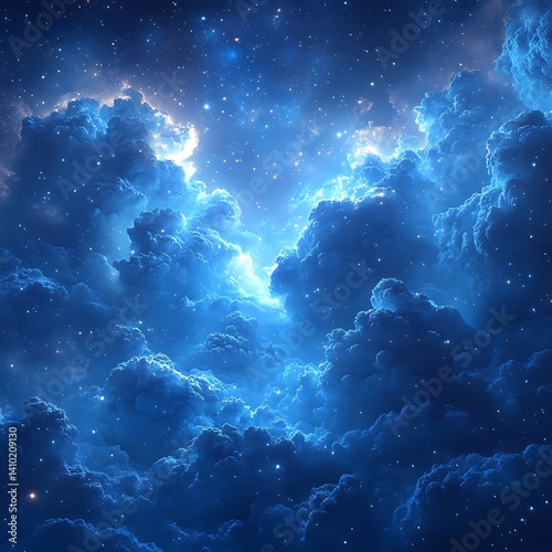 Dreamy Blue Clouds Illuminated by Starry Sky in the Night