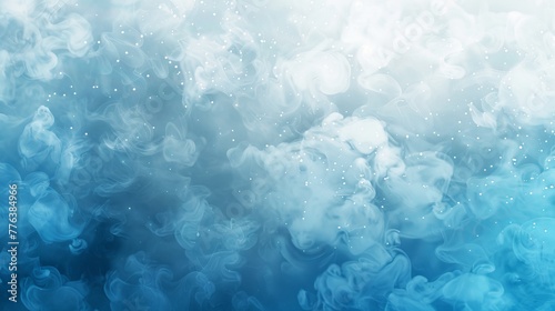 Dreamy blue smoke and particles on a light backdrop. Creative abstract concept for wallpaper and tranquil design with copy space.