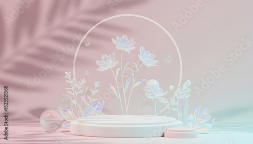 Dreamy Holographic Pink Blue Pastel Floral Product Display Podium