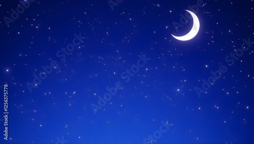 dreamy night sky background with glowing stars and a crescent moon creating a magical and serene atmosphere perfect for celestial, fantasy and peaceful-themed artistic compositions