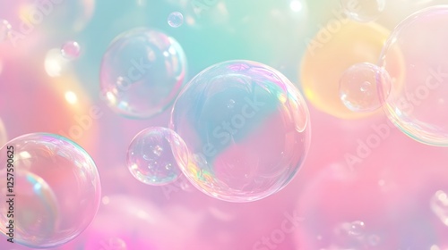 Dreamy Pastel Bubbles Floating in Air Soft Light Background Iridescent Soap Bubbles