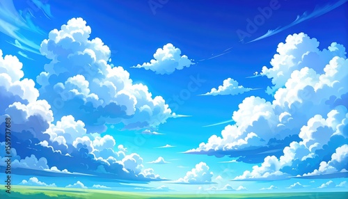 Dreamy Sky: Fluffy Clouds Over Serene Fields