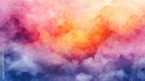 Dreamy Sunset Clouds Abstract Watercolor Background Texture