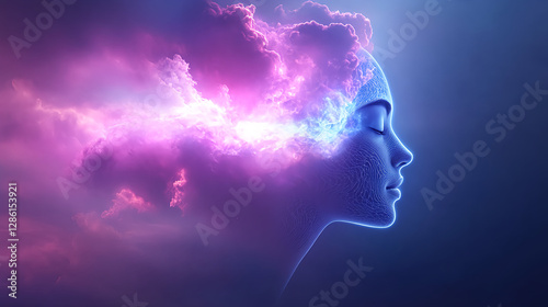 Dreamy surrealism a woman's profile with cosmic imagery digital art dark environment side view mindfulness concept