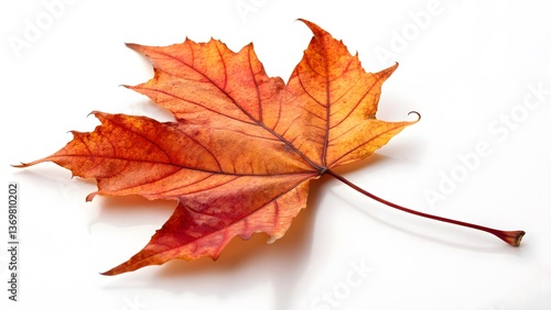 Dried Maple Leaf with Curled Edges, Isolated on a White Background, symbolizing seasonal change and the beauty of fall, Clean and Autumn-Inspired Nature Stock Photo