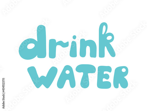 Drink water handwritten text on white background. Templates for the design of postcards, posters, web messages.