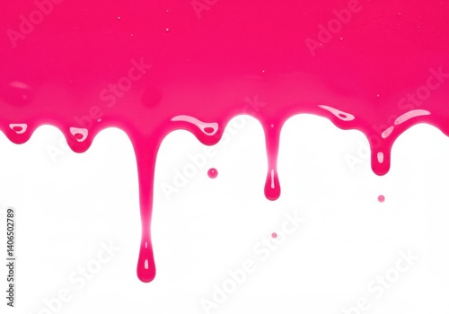Dripping bright pink paint flowing down a white surface creating a vibrant and colorful abstract design