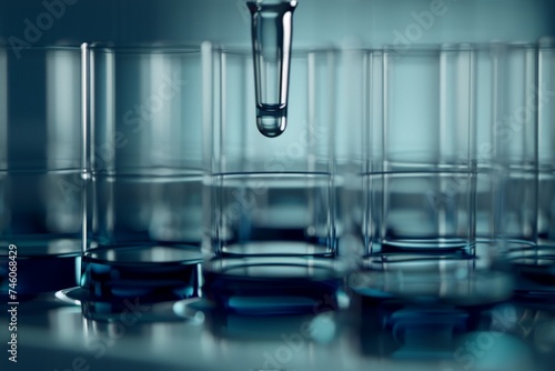 Dripping Liquid from Pipette into Test Tube in Laboratory, Light Airy Environment Test Tubes
