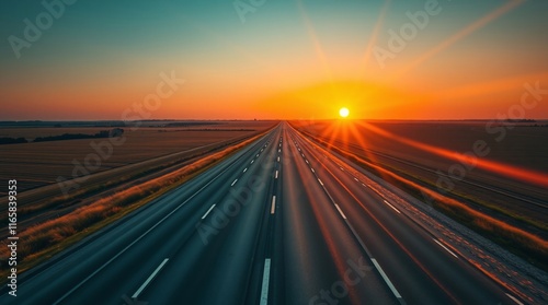 Driving on open road at beautiful sunny day to new year 2025. A new journey ahead