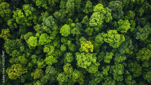 Drone capturing the vibrant greens of a tropical rainforest canopy.