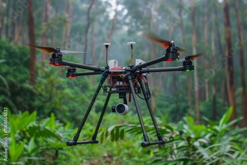 Drone conducting a wildlife survey in a dense forest on International Drone Day