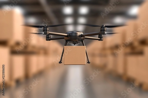 Drone Delivering Package in Warehouse Setting