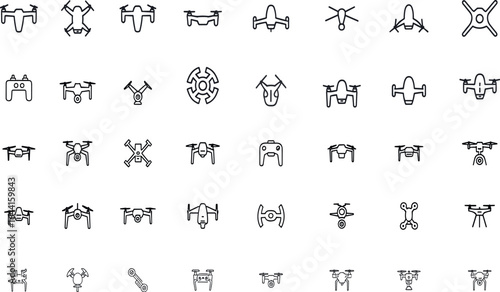 Drone line icon set, tech, analysis, courier, direction, express, safe, shipment, shipping, software, system and more victor illastretion.