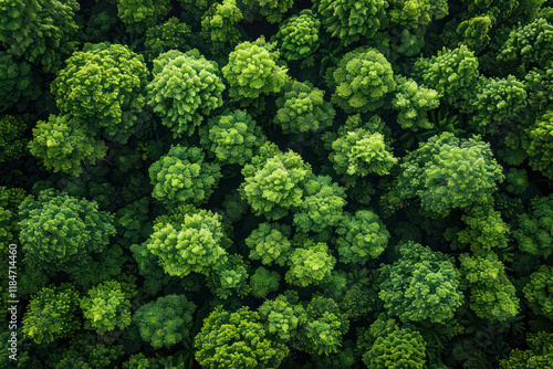 Drone view of amazing green forest with trees and bushes growing in countryside,. Generative AI