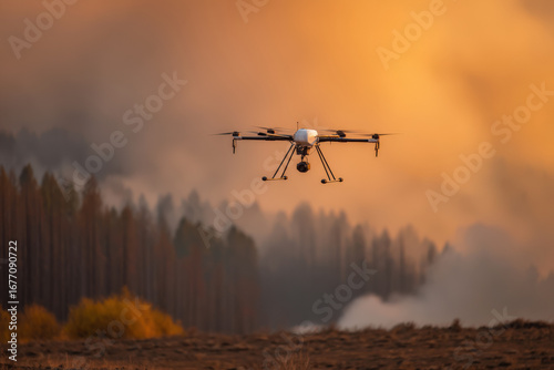 drones equipped with advanced firefighting technology are deployed to combat forest fires across vast landscapes