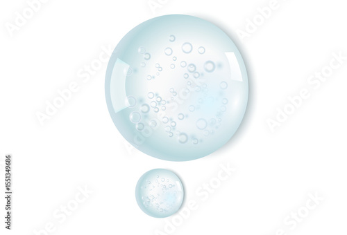 Drop of cosmetic cream, serum with transparent gel texture with micro bubble on white background