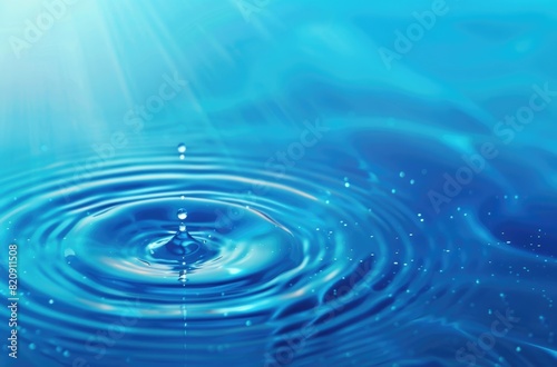 Drop of water suspended in the air about to fall to the surface, with ripples visible below, conveying tranquility, serenity and calm.