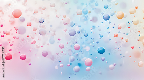 Droplets of colorful ink suspended in the air, suspended particles, colorful ink, delicate design, abstract pattern, foggy atmosphere. Delicate Ink. Illustration