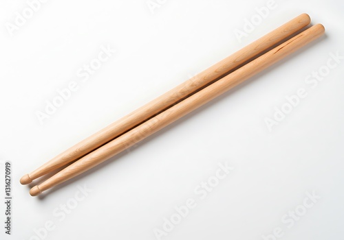 Drumsticks Pair on White Background Close-up Showing Wood Grain