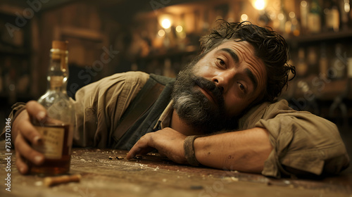 drunk bully farmer from the wild west, in a bar with bottle of whisky in hand
