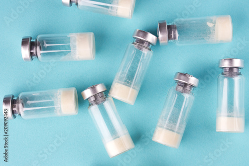 Dry bifidobacteria probiotic in a bubble on a blue background