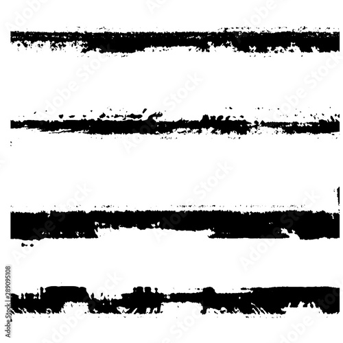 Dry brush strokes. Set of grunge pattern black on white background. Vector lines are jagged