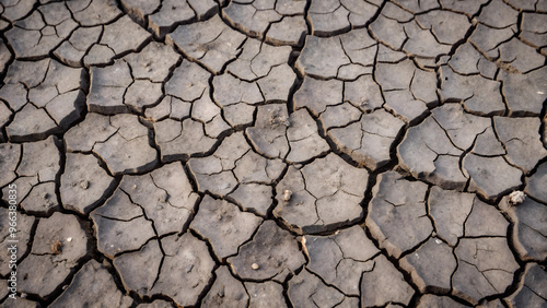 Dry cracked earth texture with a monochromatic tone in close-up