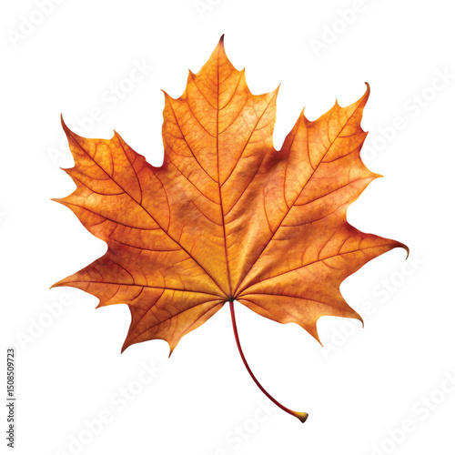 Dry Maple Leaf: isolated dry maple leaf, curled and orange-brown, autumnal element, PNG