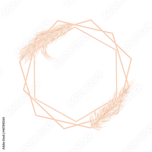 Dry Pampas grass. Soft frame for wedding invitations or postcards. Vector illustration on a white isolated background