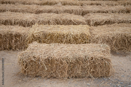 Dry Straw pressed into block cube arranged to be taken for a seat.
